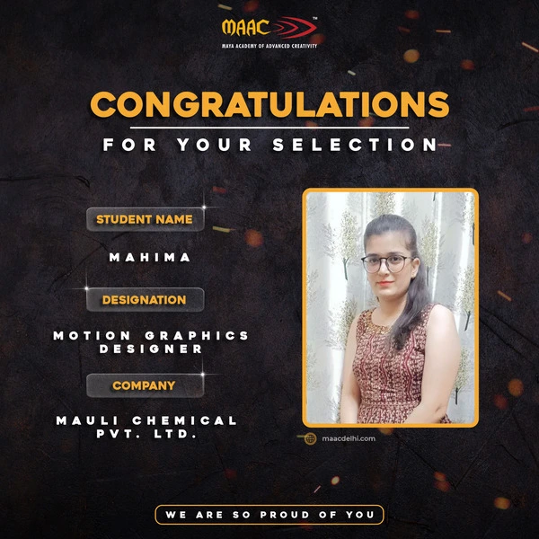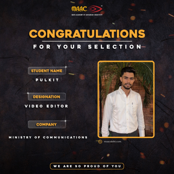 Here are the real Maac Delhi Students placement success stories. Students From Maac Rajouri, Pitampura, Southex and Preet Vihar get placemnet and success in industry after passing out Get a sneak peak into the companies hiring from our three MAAC institutes and latest success stories and placements. 57000+ Alumni network working in the Media and Entertainment Industry across the world..